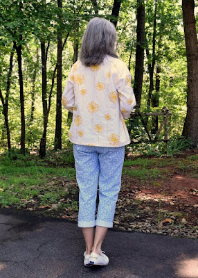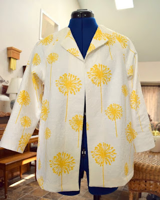 Ever since this Dandelion fabric was brought home, all the other projects in the queue have been pushed aside to make a new unlined jacket.... even though summertime temps are in the 90s F. I'm so glad I did! I love it!