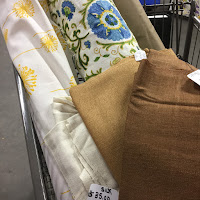 You may remember the Dandelion fabric purchased a few months ago from All About Fabrics, a fabric textile outlet in Williamston, South Carolina. All About Fabrics only sells to the general public 3 days each month at their store, but I found the very same Dandelion print fabric online at Fabric.com and they have plenty in stock. Hmmm, their care instructions says 'air dry only'.... I've already washed mine in cold water in the washing machine and dried in the dryer and all turned out well.