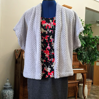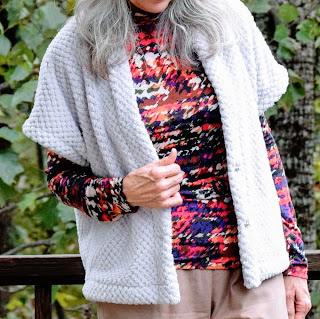 Kind of a boxy shape that is more boxier from my fluffy fleece being a little thicker fabric than the pattern's intent, but oh what a gloriously comfy, cuddly wear this is!!
