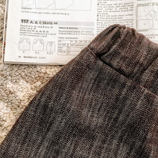 I'm deliberately trying not to photograph the mini-capsule wardrobe pieces together until all of them are complete, then I'll do a big wrap-up of everything. In the meantime got a few more pieces to go...... like unpicking this lined elastic waist skirt that feels clunky to wear and re-making it using Burda 02/2017 #117.