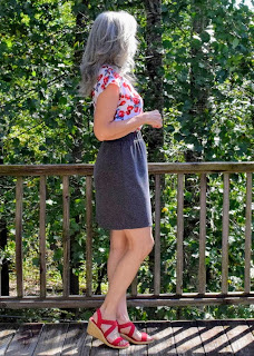 NewLook Pattern 6164 has been around for ages and looks like is now out of print. For those who've been reading blogs for a while might remember Shannon, who used to blog at MushyWear Sewing Blog, who clearly felt this was a favorite by making up all the components of this pattern at one time or another. That's why I purchased it so long ago, maybe early 2013?, having only made the cardigan back then way too big and not in a great choice of fabric print. To be honest I'm not sure it's still in the closet today. But this post isn't about the cardigan, but the skirt. This is an elastic waist, 'for knits only' pencil skirt with a back vent. My body shape does not wear pencil skirts well, so I modified the pattern by flaring out the sides a little and shortening it considerably. Cut a size 12.