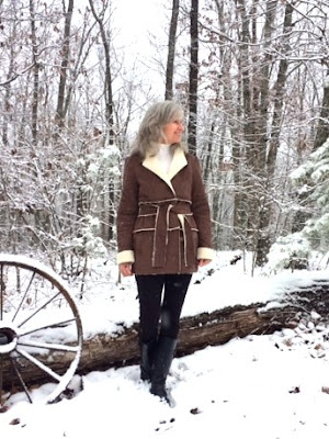 Ever since Carolyn made her gorgeous shearling jacket in 2016, I've been wanting one too and hers was a big factor in choosing this luscious chocolate brown faux suede/Sherpa at my nearby JoAnn Fabric Store. It was a hard decision because they also carried the same tan Sherpa/suede that the model is wearing above. I took care in choosing this particular suede/sherpa fabric as I wanted something substantial, not too drapey and thin. The fabric care instructions read that it is machine washable on cold, line dry.... but I have not washed this yet. I picked up 3 yards on sale at $15/yard and have enough left over to make a vest.