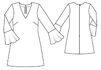 When I first saw this pretty bell sleeved dress pattern in Burda's 12/2016 issue, I just knew it needed (it had!) to be my 2017 Christmas Dress. Burda shows 3 different ways to make this versatile pattern..... a tunic, a dress and a maxi dress. Burda also shows 3 adaptations of the neck/collar with a choker type of collar, tie collar or simple v-neckline collar. Burda also includes 2 different sleeve patterns. I made #112 the Bell Sleeve Dress with the simple v-neckline. You can see more about this pattern at Burdastyle.com. (Photos below credit to Burdastyle.com ).