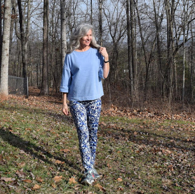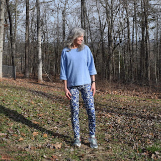 Floral print leggings are so popular right now, but not having any appropriate floral print knit in the stash, and wanting a new pair yesterday (isn't that always the case!) am loving my new blue and white geometric version!