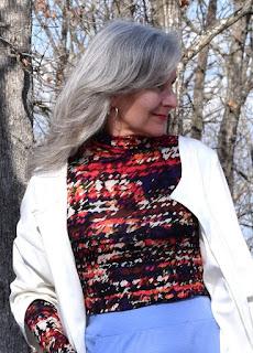 It took a bit of searching to find a simple turtleneck with a figure hugging design... finally settling on the Itch to Stitch Hepburn Turtleneck. Sue wore her Hepburn Turtleneck on her glorious travels to Hong Kong where you can see her turtleneck near the bottom of her post. She writes that it's easy to layer, but also looks okay on its own. That's how I feel too.