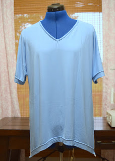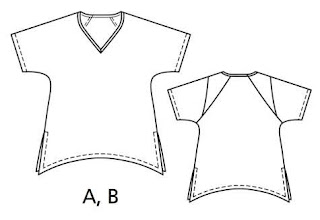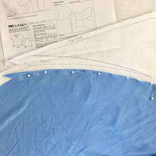 Let's look at little closer at this top. Purchased a thin, 4-way stretch, super soft rayon jersey knit at Hobby Lobby thinking 'soft', 'drapey'.... but in hind sight it's probably too thin for this top. Made a size 36 with no modifications.