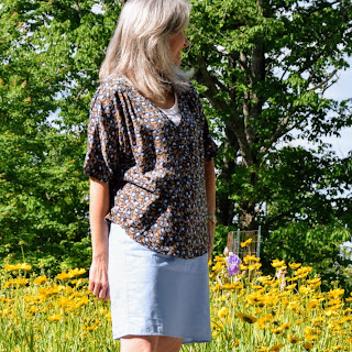 And again, wearing. Super comfortable. The silk was a remnant picked up at my local textile outlet that's only open once a month for all of $7.50. Because I'm not a fan of dry-cleaning, and because there was so little $$ invested in the piece, I washed and dried it before cutting out. I think it handled that pretty well.