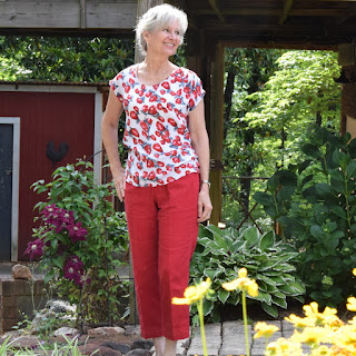 So I was very surprised, when I paired it with the Itch to Stitch Belize Shorts today for Me-Made-May, that it's sort of 'okay'. I've enjoyed wearing it today. So please do not let my disenchantment dissuade you from making this top as with better fabric choices, and consideration of body shape..... I still think it is super cute.