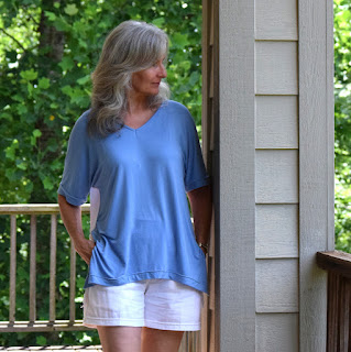 I think you are so right Mama Pea..... poor choice of fabric both content and color! I wore this top all day yesterday, as shown here with the shorts, and really quite enjoyed it. You brought up a good point about the sharkbite hemline....hmmmm.... didn't think of that. Thank you so much for your insightfulness and kind compliment! Have a good day!! :)
