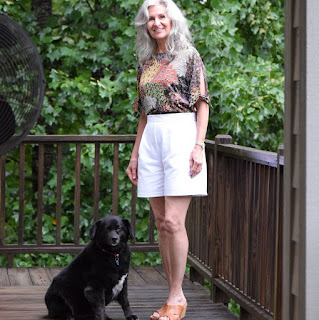 Overall this project was a skillbuilder in a stress-free way and a pleasant process. Took maybe an afternoon to complete. Now I'm ready to cut into the white brushed cotton twill. Meanwhile feel like I've got some sort of 'bonus' shorts to wear! Wearing the Ottobre Sculpture asymetrical top out of white linen with it here. Love this top and love it even more now that I have a pair of shorts to be able to tuck it in.