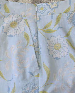 Inside out..... found a soft floral cotton in the stash and cut the waistband in half so this would be against my skin. Such a pleasure adding these little touches. May I also say how super proud I am of the interior stitching on this waistband. I took my time and pinned v.e.r.y carefully before top-stitching down and it came out very nice and even.
