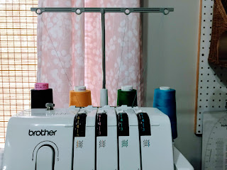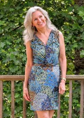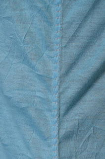 Also trying to show how Burda incorporates the pockets into the center front seam. All lies nice and flat and these pockets don't move around in an unsightly way. Also had fun loading my serger with different colored threads. Seams are sewn then serged. Hems are double-needled top-stitched.