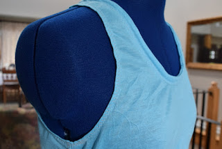 If I had thought the muslin would be this wearable, I would've taken a little more time with fabric pattern placement. Not keen on the large blue flowers repeating so close together there in the front.... but overall guess it's okay.
