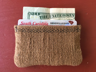 Anyway, back to the making..... took a few minutes to sew a small 'pocket' out of the raw silk to hold my driver's license and a little money. I am serious about making this bag work well for the Y and needed to reduce bulk. I don't want to take my wallet inside, much less my purse, and also don't want to leave anything in my car.