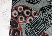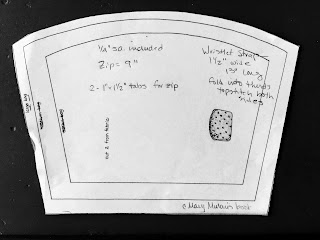 This is Mary's larger version bag pattern photocopied from the book with seam allowances added. At first I thought a wristlet would be a good idea and dove in making a faux leather version.