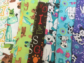 Knowing I had a good pattern, now I turned to Etsy for cute doggie fabric. And boy what fun I had!! As everyone knows, Etsy is a marketplace for independent sellers and I had the great good fortune to land on The Fancy Flutist Finds site when she was selling her stash of doggie fabrics. Such a super nice seller. After responding almost immediately to my e-mail asking for reduced shipping charges due to combining fabrics, she asked what I would be making. When she realized I needed such small pieces, aka scraps really, she included all the doggie scraps she had for free in my package too. What a nice surprise!! Isn't the envelope she made for me fun too?!!