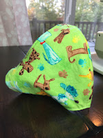 These are the larger pieces I purchased. It was doggie cuteness overload. I specifically tried to buy the prints that had purple after Erin shared with me that was her favorite color. Now it was time to sew all the face masks.