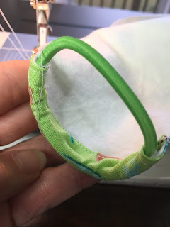 DeleteI made headbands several years ago using ponytail elastic and one inch ribbons. They were easy to make, Here is the clue to being able to stretch the hairbands for different heads: take two stretchies, loop one inside the other and pull it thru making two ovals attached to each other. Then each side can be sewn into the side seams of the mask.
