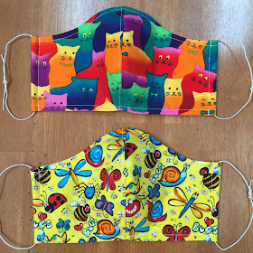 She immediately gravitated to the cat fabric and said she loved purple. After a few days of using, she also said the cottons worked great and were the best because they kept their shape. She loved that it covered her nose, mouth and chin and that the pattern was perfect. She also added that they laundered well. She was a trooper about the disappointing elastics, but I knew there was definitely room for improvement there.