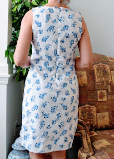 Guess you can tell I did not iron it before wearing it this morning!! Oh well. Invisible zipper and can you believe after sewing the lining to the zip..... one of the last steps of construction..... I caught the lining in the zip as I was testing it out and tore a hole in the lining. Got out the needle and thread and sewed the hole up as best I could. So glad I am letting go of perfectionist tendencies as this didn't phase me at all. It feel so nice to have a new dress to wear.