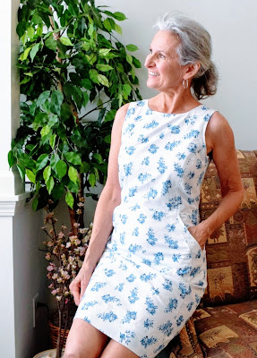 End of July I woke up one Saturday morning and just knew something was wrong with crushing fatigue and labored breathing. My daughter took me to our MD360..... a place to receive doctor care instead of being in an Emergency Room..... and was diagnosed with Bronchitis and pneumonia..... again. Prescribed a 2nd round of antibiotics, in a different tier than the first and did not get better. This time was able to see my primary care physician and my lungs were worse and I was now wheezing. It was definitely pneumonia and not getting better. She bumped me up to a higher tier of antibiotics at the highest strength, adding steroids on top of the mix. I am finishing up those this week and can say I finally feel more like myself again..... and it feels GREAT!!! It feels great to be able to breathe and get a good lungful of air again.... to not cough and hack all day/night...... it just feels great to feel better. So much better that I felt like taking a few pictures this morning, taking advantage of some of the beautiful natural light pouring in from the sunroom to share with you my new dress.