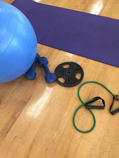 As part of my new lifestyle and focusing on bettering my health, I am working out every day now and need to up the quality and style in my workout outfits. Most afternoons a pleasant hour is spent at my local Y (gym) where not only am I getting healthy physically, but meeting some of the nicest folks and expanding my circle of friends. It's now such a part of my routine, I look forward to going each day and miss it if I'm not able to get there. There are lots of different cardio and weight resistant machines that I enjoy, but some days it's nice to slip off to a quiet, empty group exercise room and use simple tools, below. This has been..... is.... a huge learning curve for me and one that I am very much enjoying.