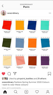 As I was scrolling through my IG feed this morning, Erin at sewordinary had put up Pantone's 2020 Spring color palette.....