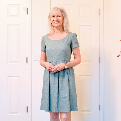 First up..... making another version of this cute dress, below. Everyone should have a couple of fun, easy to wear little dresses in their closets and the free pattern Orla Dress by French Navy fits that bill for me. This dress, below, was made way back in 2017 for my daughter who never liked it, nor wore it, so it was eventually rescued and put into my closet but never officially blogged about. Sewn straight from the pattern, was pleasantly surprised to find it produced a pretty good fit for me. Made from a lovely sage green quilting cotton with the bodice lined in soft white cotton, it is a delight to wear.