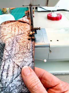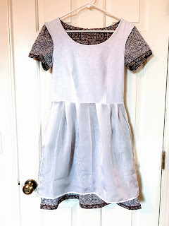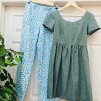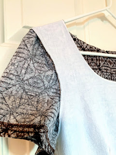 What would normally be an afternoon make, took a few days as am finding it hard to concentrate with the constantly changing news drawing me in. Everything is put down when my President or state governor holds a press conference. Makes me think of World War II days when families might stop all they were doing to huddle 'round the radio for updates of those serious times. One point of construction I'd like to note is that I do not gather anything. With knits its so easy to 'ease' those 'gathers' in.... bust area and even the sleeves.