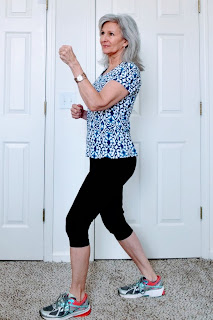 1. Well I replied to your sweet comment last night, but looks like Google ate it. ;( So glad you are finding an exercise routine that works for you... that's what's important! And I'm right there with you on wanting to sew athletic wear hoping to show what I'm working on soon here. Hobby Lobby has some great black athletic wear knit I'm using for leggings. And yes! love the blue striped top and think it's such fun we both have the same. :)