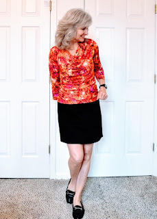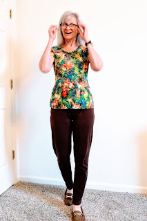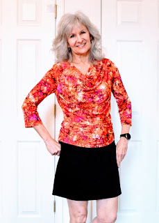 The skirt was made back in August 2019, just never blogged, when I had lost so much weight and a size 26 1/2" waist was a perfect fit. Today, weighing in at a healthier weight, it's a little snug, but wearable. Removed 2 1/2" off the bottom length, and sewed the hem with a 2 1/2" hem allowance. And still not sure it might not need to be a little shorter? What I really like about this skirt is that it is full without being voluminous, if that makes sense.
