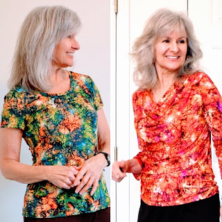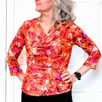 Meanwhile..... as I was writing this post to get a pattern link for you (looks like it may be out of print)... I realized that 2 of my sewing buddies have made this pattern before..... Sarah Liz made this very top sans ruching (which may be what I end up doing!) and Shirley who made the alternate neckline as a dress. Funny story about Shirley.... the last couple of tops she and I have made we've chosen the very same fabrics from Hobby Lobby!! And we don't even live anywhere near each other. Great minds think alike, no?!!