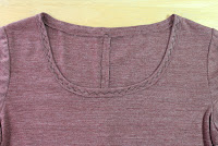 Back in 2014 I finished off the neckline a la Alabama Chanin style because machine stitching a neckline binding on seemed most intimidating at the time. Wrote a short tutorial you can see here about how I did this. Sleeve hems were also hand-stitched. This top, below, was adored and worn until the fabric wore out.