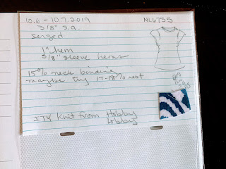 On each card is this basic template established years ago. Date of beginning project - date of ending project. Always note the pattern, awkwardly draw a copy of what I sewed, construction notes and changes I'd make next time..... and last but not least fabric info and swatch. I've made so many things now, I've begun noting info on the actual pattern itself.... but always continue with the notecard no matter what.
