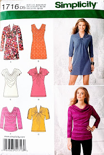..... it could be because it's the 'sister' fabric to the recent Simplicity 1716. My original plan was to make 2 of these cowl, 3/4 sleeve tops, but after dealing with all the slippery slidey-ness pinning all those pleats.... decided to go with something much simpler. Thus the NewLook 6735 short-sleeved view c.