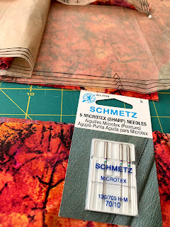 This knit is a luxurious, super slinky, shifting, silky pain in the you-know-what to sew, but will be oh-so-wonderful to wear... so the first order of business was figuring out which needle to use. Microtex worked well on this.
