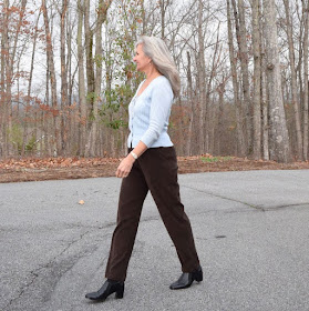 Brown corduroy pants NewLook Pattern 6216 worn with rtw cardi