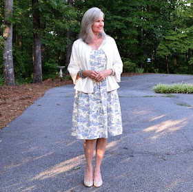 I wore this dress and jacket, photo below, to church this day and seems I've accidentally stumbled onto the perfect dress for this jacket! Love this combo! But I have to tell you what happened later this day. My husband and I were at a social event and as I was introduced to this very chic dressed lady, she says 'Oh, I love your dress.' With that, of course, I wanted to squeal! *, but instead calmly said 'Thank you', when much to my surprise I hear my husband saying, with pride in his voice, 'Oh, you have just made her day because she makes all her clothes'! With that, this very sweet lady wanted to talk about this gorgeous Toile de Jouy fabric and looked at how the sheep and shepherd were perfectly centered on the bodice. *Insert big smile here*! Made my day!!! How do you respond when folks might compliment you on your handmade garments?