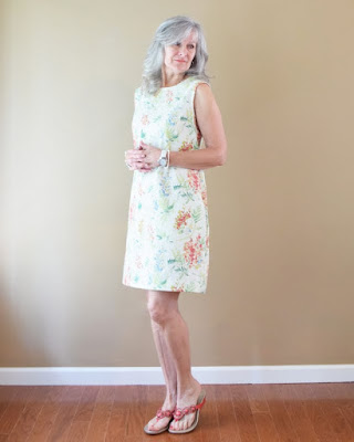 A shift dress isn't the most flattering fit on me I suppose, but for comfort on hot and humid summer days, it can't be beat.  By the way, I added in-seam pockets.  Kinda' surprised the pattern did not include them.  With all the fabric floating around, there's plenty of room to slip pockets in.
