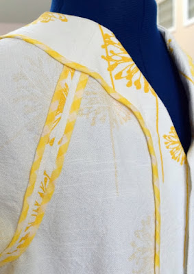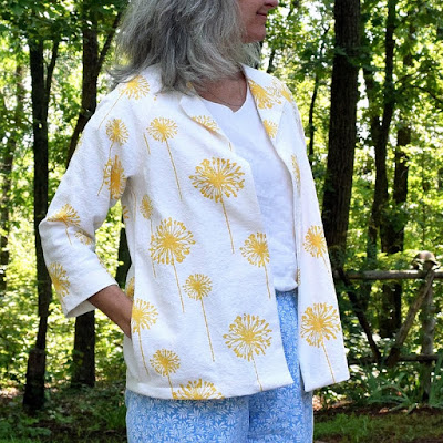 Ever since this Dandelion fabric was brought home, all the other projects in the queue have been pushed aside to make a new unlined jacket.... even though summertime temps are in the 90s F. I'm so glad I did! I love it!