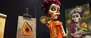 Not too long after this exposure to Frida Kahlo, my family was watching the movie 'Coco' for one of our traditional Friday homemade pizza and family movie nights, when the 'Frida' scene appeared..... and suddenly I realized I 'knew' who this character represented. This link held an interesting article to read about the scene as it is quite funny, complete with the character painting self-portraits holding the monkey that Frida was known to enjoy.....